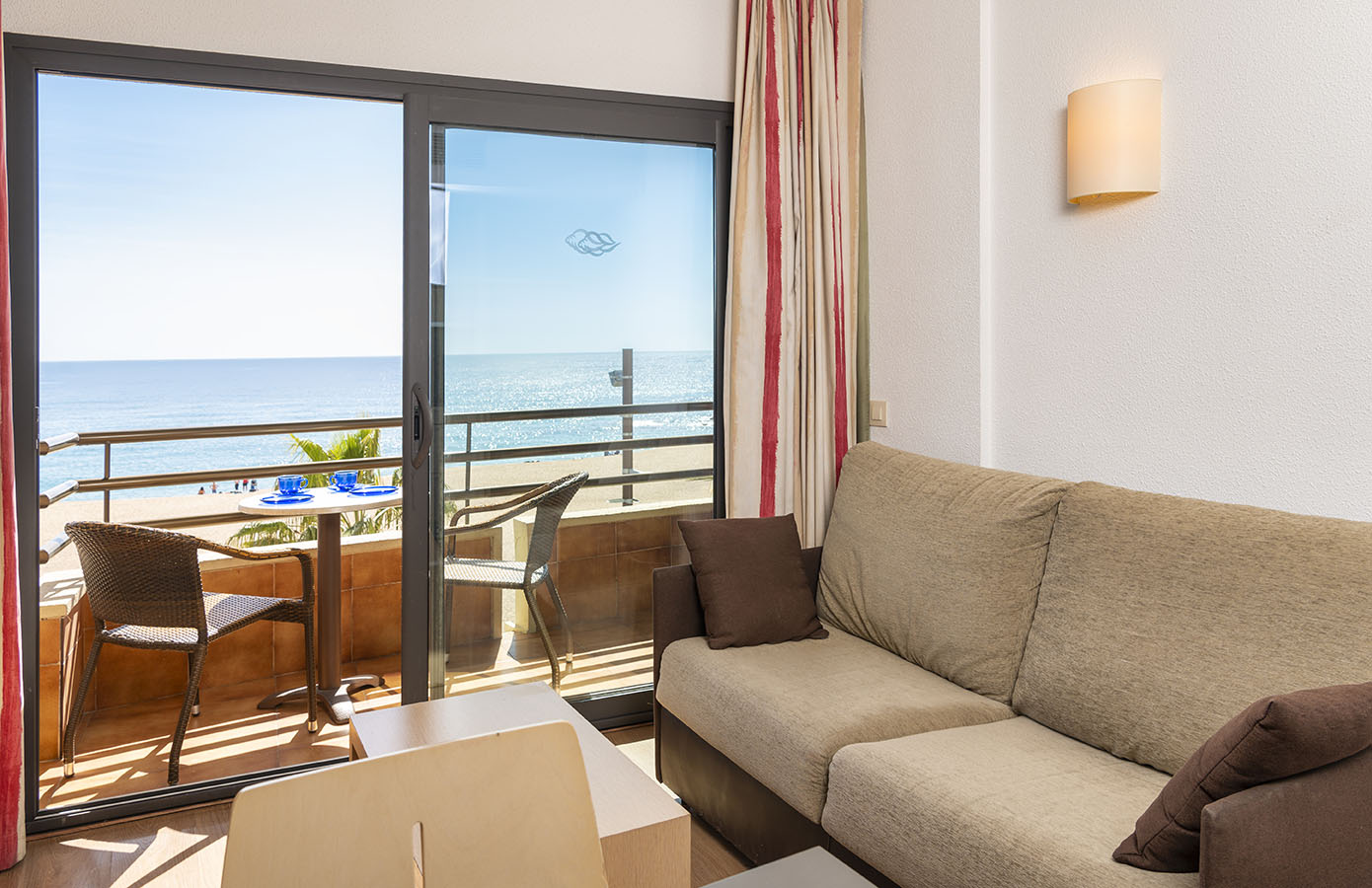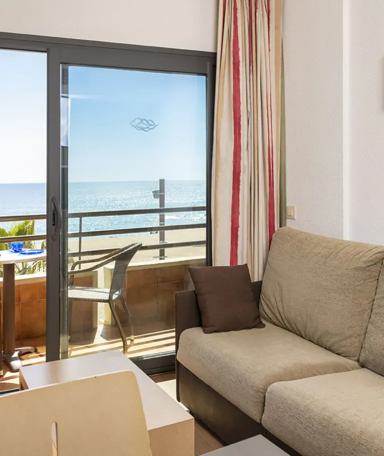 Les appartements du type A mer ont une capacité de 2 à 4 personnes. Ils possèdent une chambre double, et un balcon ayant une vue exceptionnelles sur la mer.